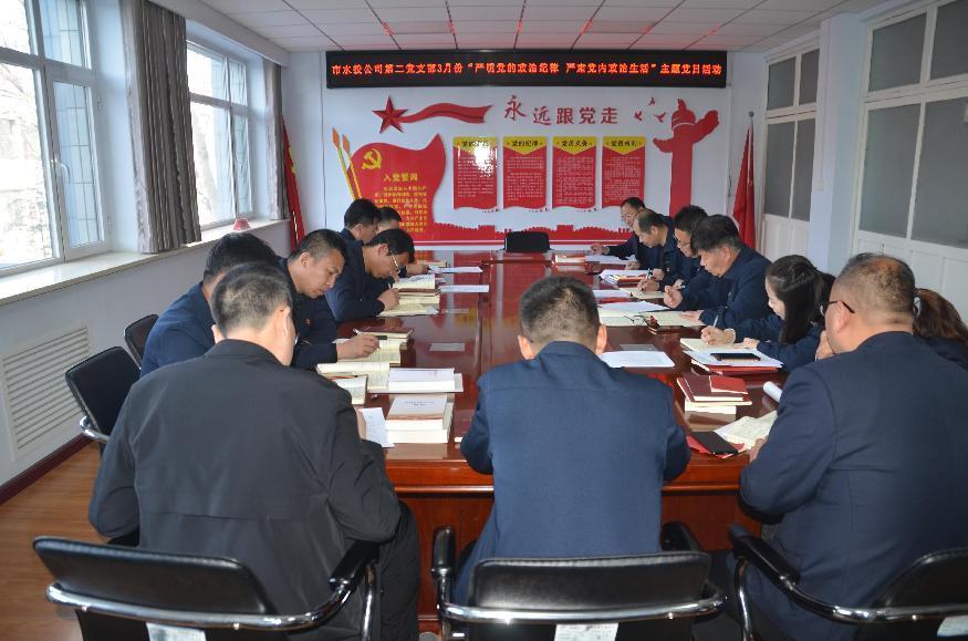 按照市水投公司党委统一部署要求,2022年3月7日我公司党支部组织全体党员、积极分子、群众代表开展了“严明党的政治纪律 严肃党内政治生活”主题党日活动,会议由支部书记吴争兵主持。