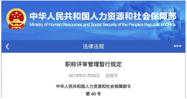 7月9日,人力资源社会保障部印发《职称评审管理暂行规定》(以下简称“《规定》”)。《规定》自2019年9月1日起施行,全文共44条,明确了职称评审管理的主要规定和程序,对职称评审的全过程进行规范管理。