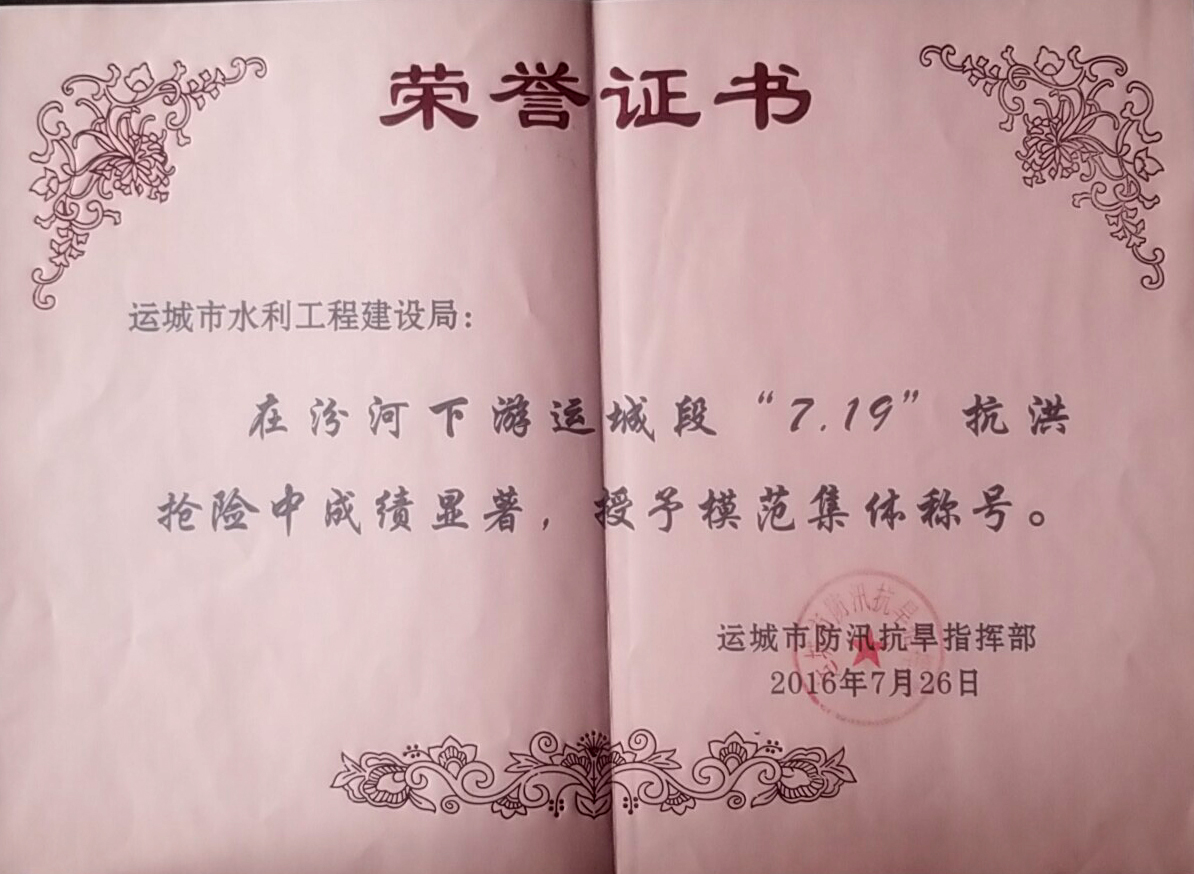 汾河下游抗洪抢险成绩显著